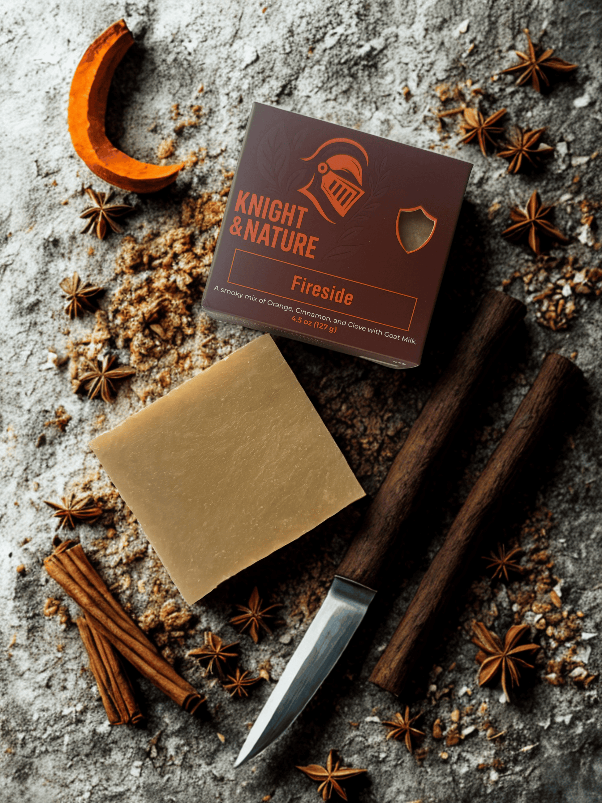 Fireside blends smoke and spice for a rustic, grounding cleanse. Crafted with natural oils to leave skin soft, refreshed, and seasonally bold.