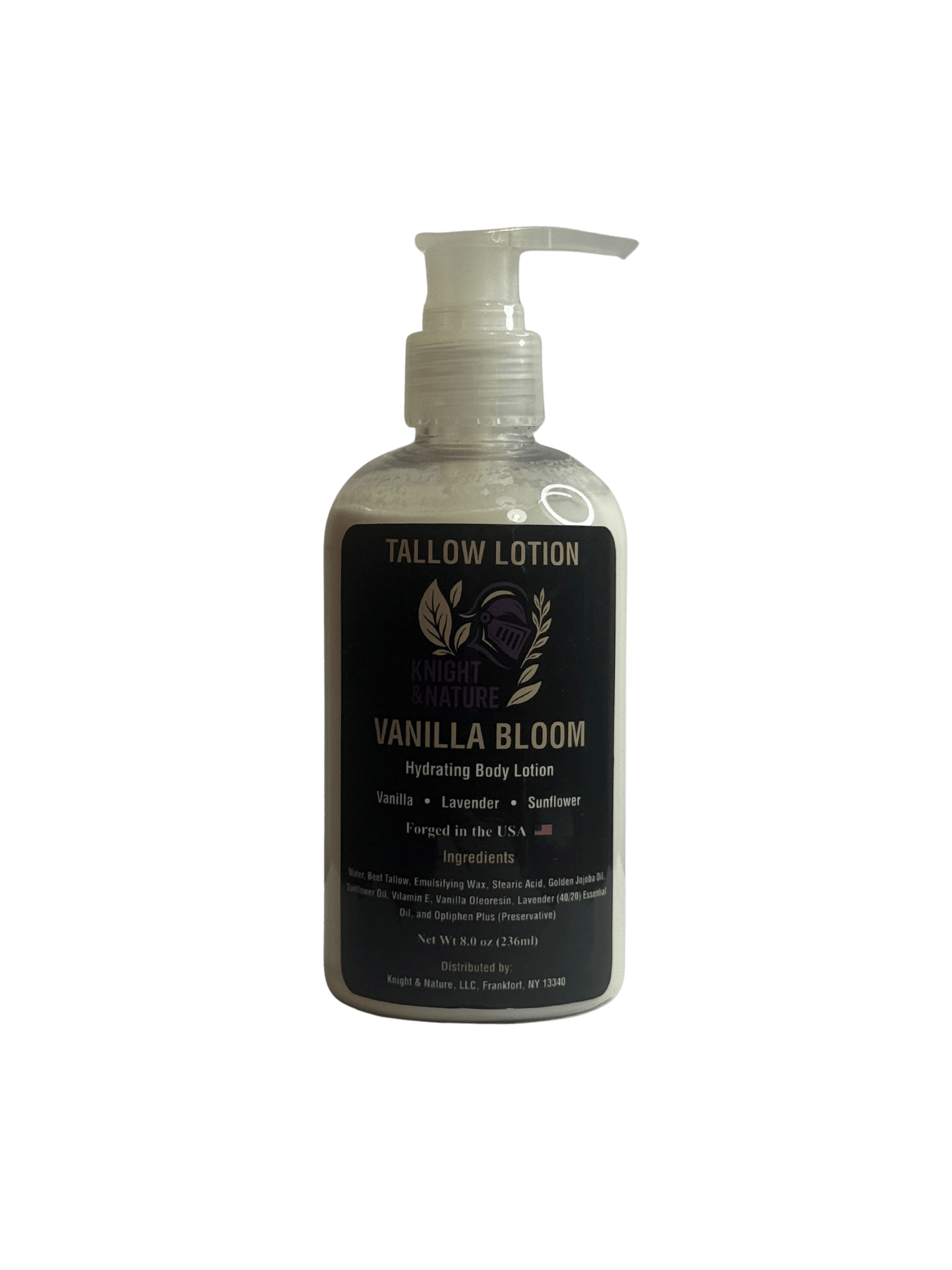 Water, Beef Tallow, Emulsifying Wax, Stearic Acid, Golden Jojoba Oil, Sunflower Oil, Vitamin E, Vanilla Oleoresin, Lavender (40/20) Essential Oil, Optiphen Plus (preservative)
